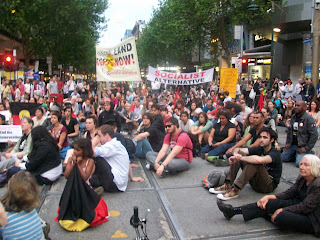 The demonstration on Wednesday night in Bourke Street mall was a fantastic showing of supporters around the school. Over a hundred people gathered to listen to speeches from prominent activists such as Gary Foley and Robbie Thorpe, and educators around the school. We also heard from Greens MP Sue Pennecuik and had John Leemans in the Northern Territory address the rally by phone to offer solidarity from those fighting against the NT Intervention.